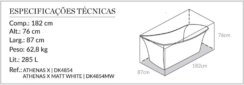 Banheira Athenas Air Massage 76 x 182cm Branca