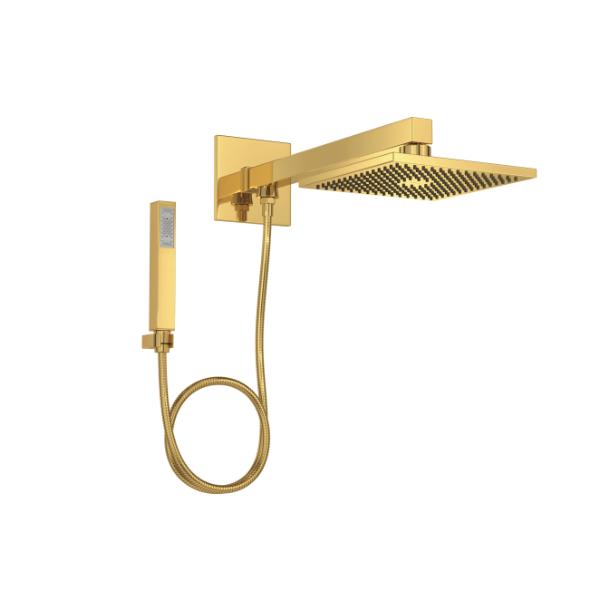 Chuveiro com Desviador e Ducha Manual Quadrado Gold