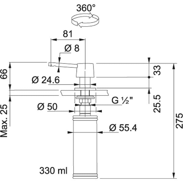 DadosAtributosO Dosador de Sabão Redondo Fosco Franke traz sofisticação e praticidade para a sua cozinha.