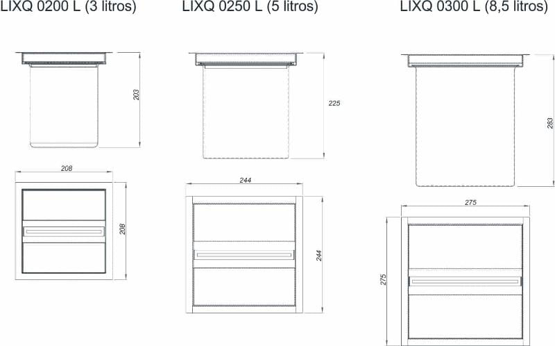 DadosCorInoxAmbiente de UtilizaçãoCozinhaAplicação do ProdutoCalhaAtributosSe você quer sair do básico e investir em algo diferente para sua cozinha, as lixeiras quadradas são a escolha certa! Elas trazem a praticidade da lixeira tradicional embutida porém saem um pouco do tradicional desenho circular e vão de encontro às novas tendências em design com linhas retas e simples.ComposiçãoAço Inox 304 1,00 mmReferênciaLIXQ 0250 L
